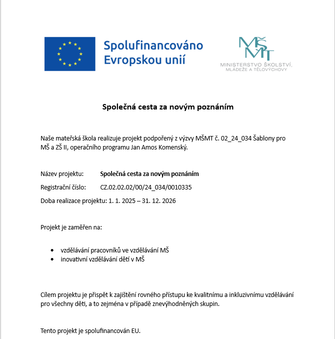 ZAPOJENÍ NAŠÍ MATEŘINKY DO PROJEKTŮ